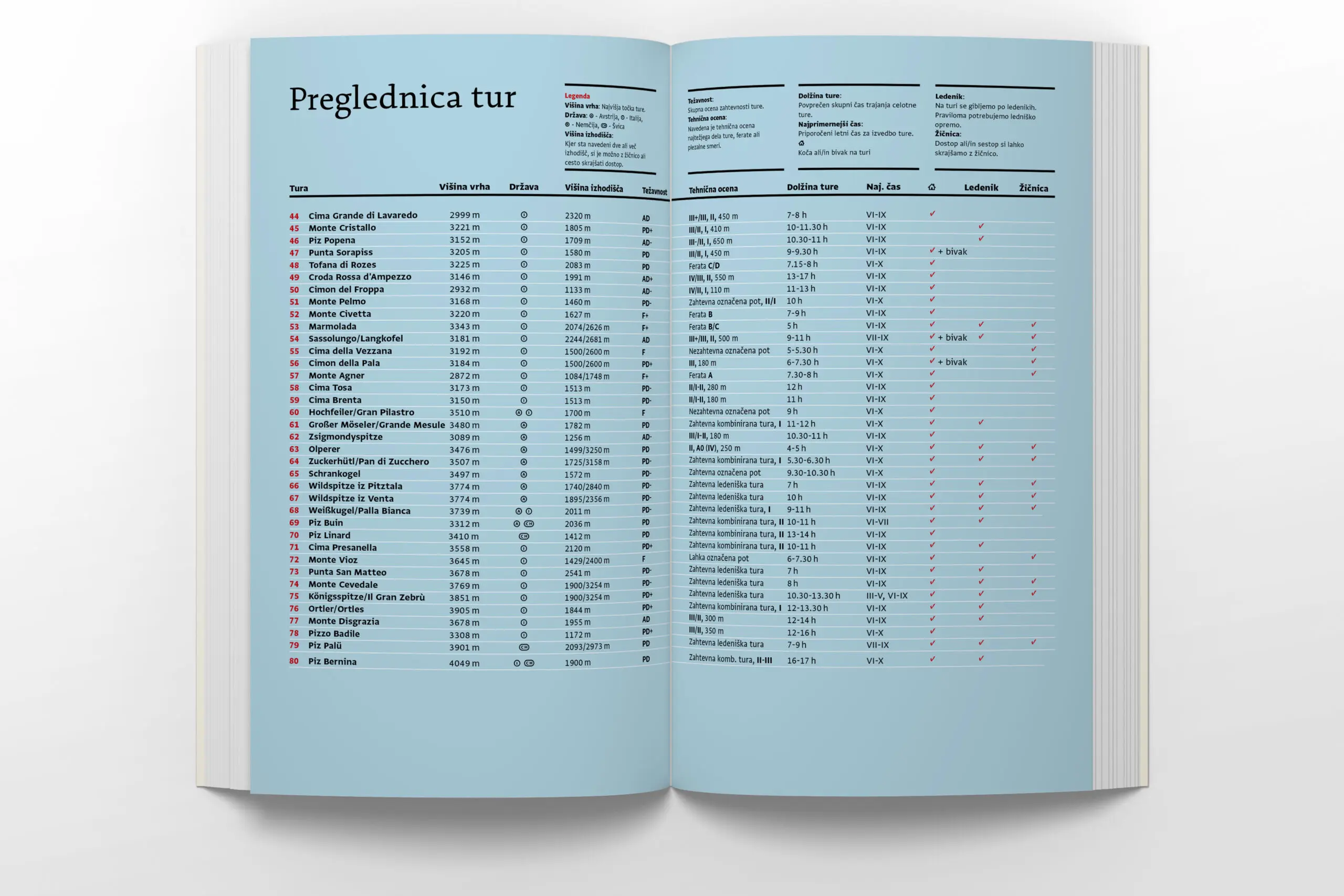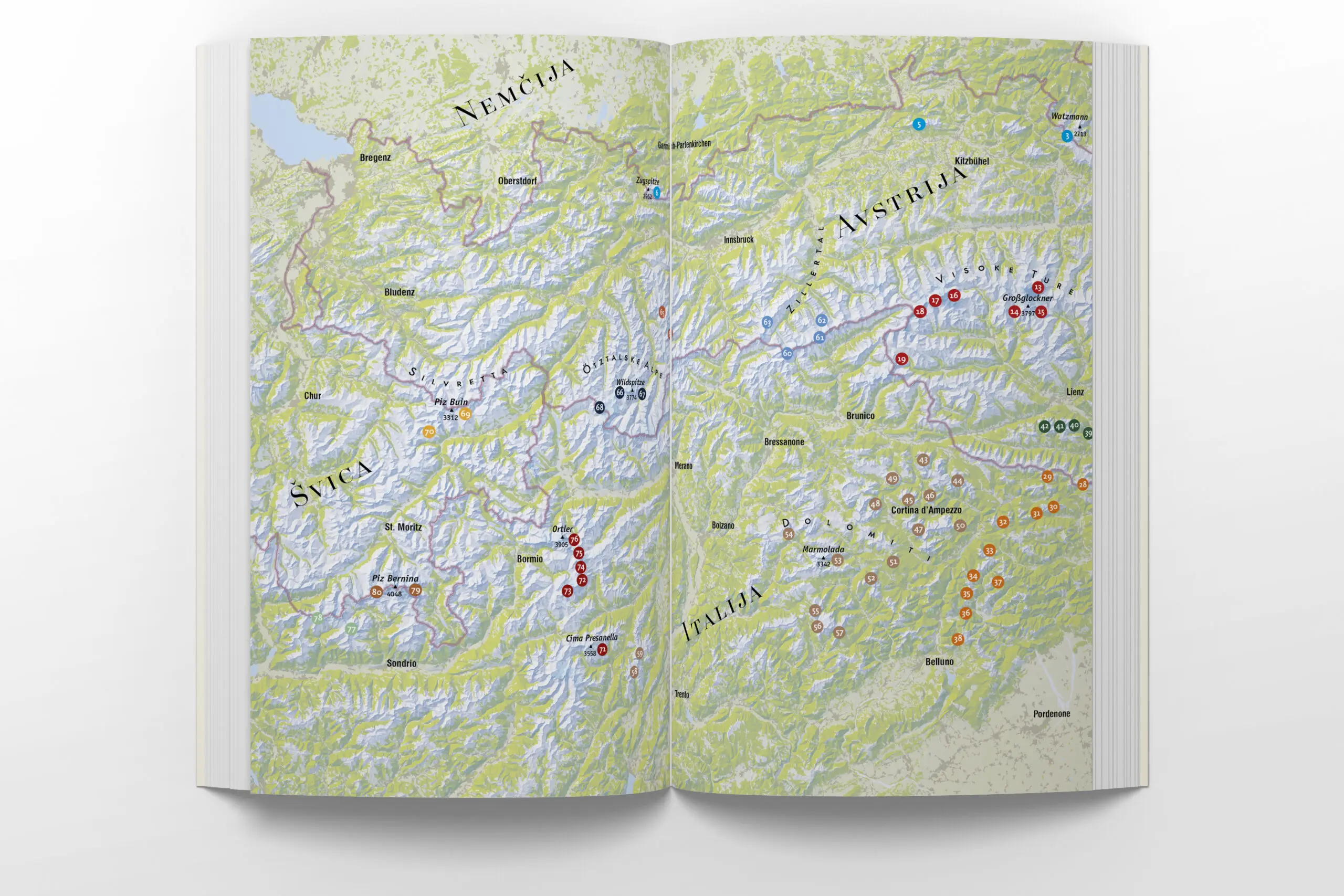 O njunem gorniškem podvigu govori že sam izbor ciljev, ki zajema najzanimivejše vrhove vseh pomembnejših gorskih skupin v obsežnem vzhodnem alpskem loku, od Karnijskih Alp preko Dolomitov ter avstrijskih in nemških Alp do Bernine na italijansko-švicarski meji.