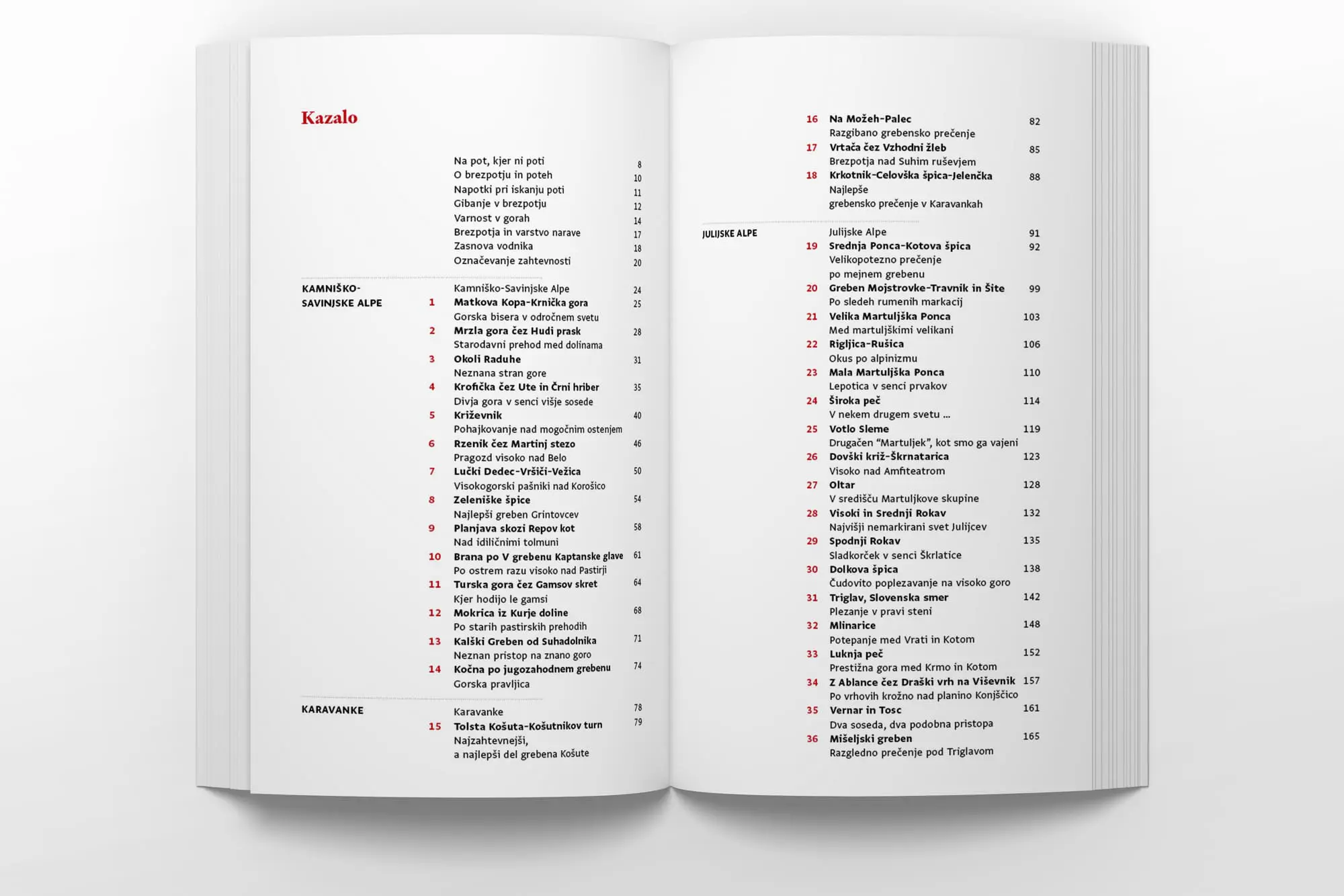 Nova izdaja prinaša izbor avtorjevih najljubših brezpotnih tur in lažjih alpinističnih smeri do II. težavnostne stopnje, kar je v precejšnji meri vplivalo tudi na sam nabor tur. Prenovljeni vodnik je vsebinsko in geografsko razširjen, saj je opisanih tudi nekaj bolj ali manj drznih pristopov in zračnih prečenj v italijanskih Zahodnih Julijcih ter Julijskih Predalpah (Rabeljske špice, Visoka Bela špica, Montaž iz Dunje, prečenje Muzcev …). Skupno število tur je tako v novi izdaji precej naraslo, s 50 na 70, 26 vzponov je novih. Vodnik je obogaten z novimi fotografijami in preglednimi akvarelnimi skicami Danila Cedilnika – Dena, ki pri vodniku sodeluje že od samega začetka.