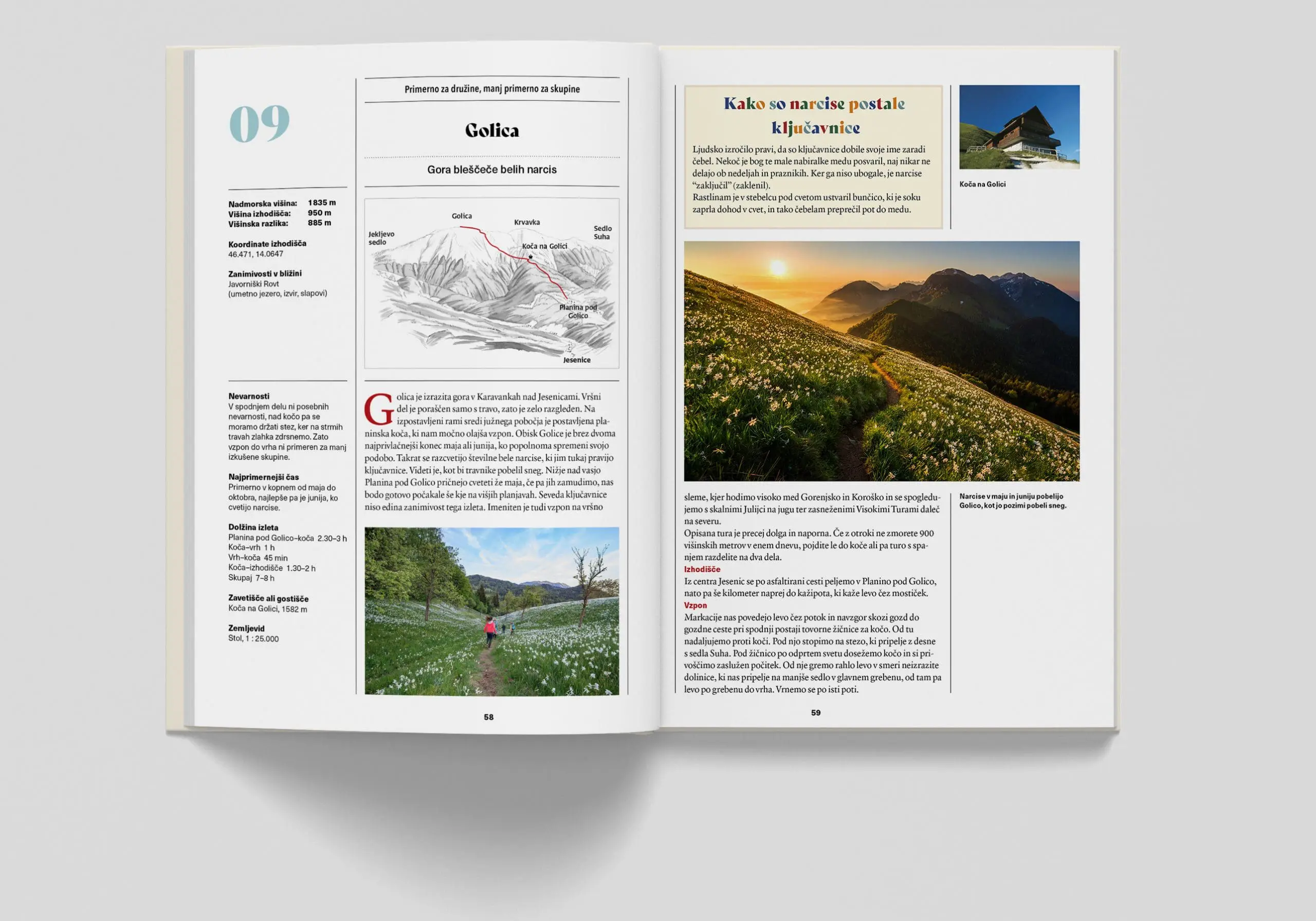 Vsak izlet je opremljen s preglednim reliefnim zemljevidom ali skico, ki služi predvsem temu, da si lažje ustvarimo predstavo o poteku poti. Navedene so naravne in kulturne znamenitosti v bližini, kar lahko služi kot koristen namig za popestritev ture.