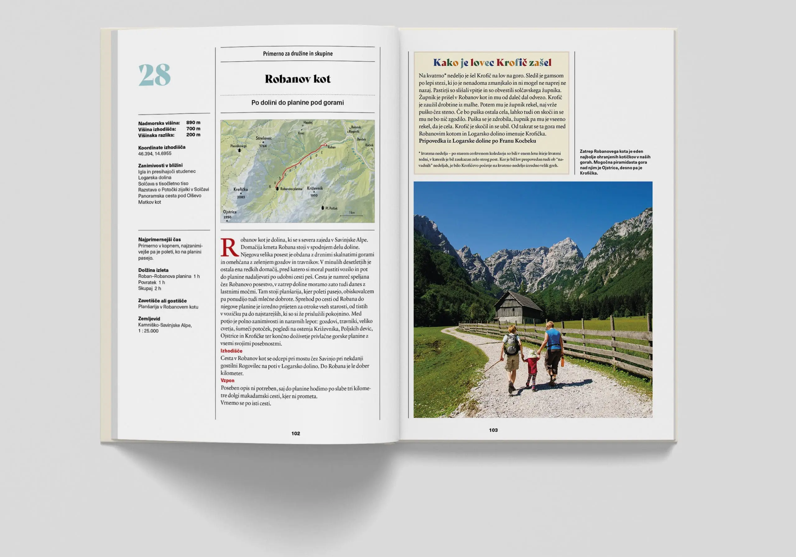 Knjiga združuje ljudske zgodbe in poti, ki vas vodijo do krajev iz zgodb – lahkotni sprehodi, primerni za vse generacije.