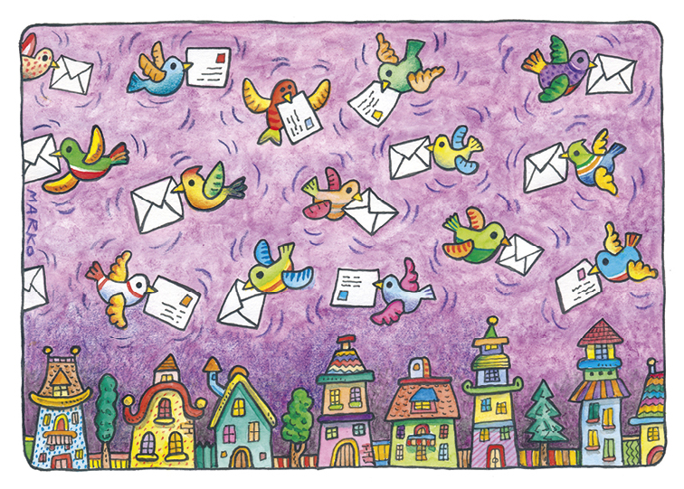 Komplet vsebuje 10 voščilnic (5 motivov x 2) velikosti 16×11,5cm in kuverte.