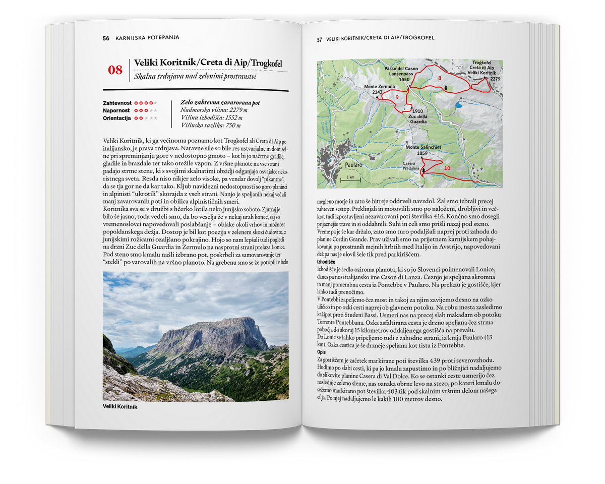 Zelo sva počaščena, da po dvajsetih letih lahko ponudiva prenovljeno izdajo najinega vodnika Karnijska potepanja. Takrat sva orala ledino, saj je bilo o tem privlačnem gorstvu v slovenščini napisanega bore malo. Domišljava si, da je tudi najin vodnik pripomogel k temu, da Karnijske Alpe Slovencem niso več neznanka. Tja zahaja vedno več slovenskih obiskovalcev, o njih je napisanega vedno več, na spletu je informacij včasih še preveč. Morda bo ravno zaradi preobilice informacij prav prišla tudi ta, ne predebela knjižica, v kateri so strnjeno opisani za naju najprivlačnejši cilji in z njimi povezane dogodivščine.