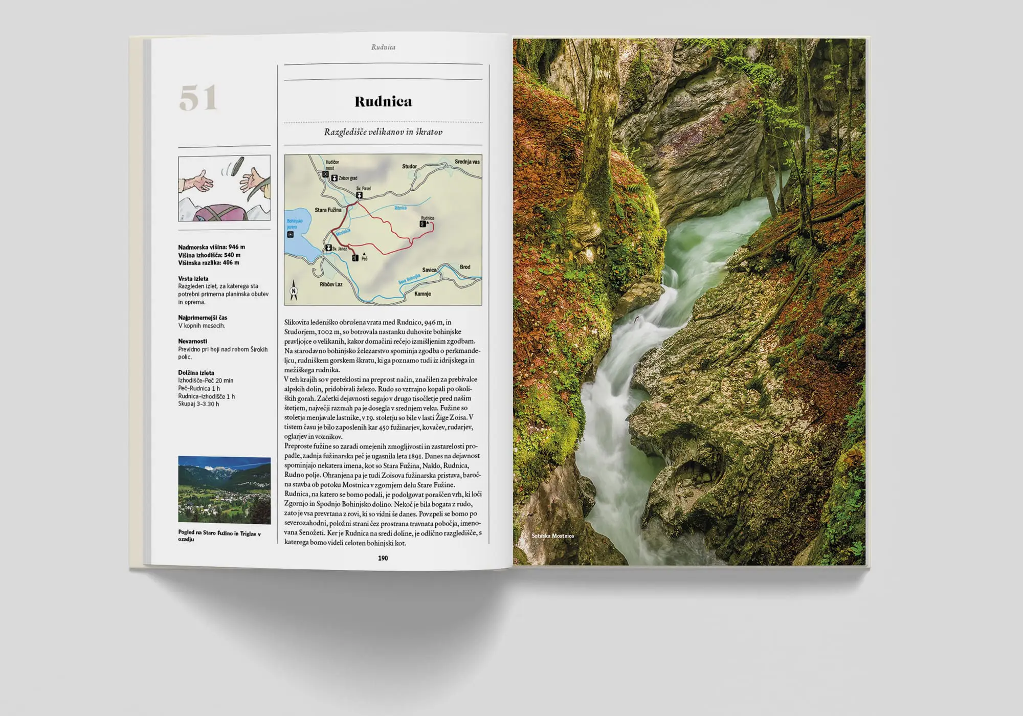 Vsak izlet je opremljen še s fotografijami priznanih krajinskih fotografov, s preglednim zemljevidom ter z vsemi podatki, ki nam olajšajo njegovo pripravo in izvedbo.