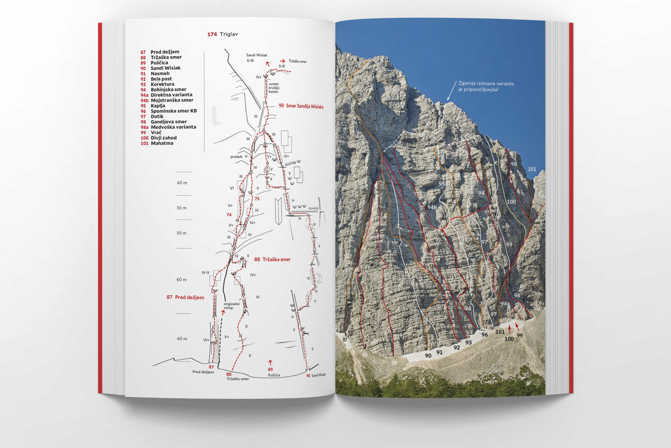 Najpopolnejši alpinistični vodnik severne triglavske stene, v katerem so zbrani podatki o vseh smereh od leta 1906 do danes – skoraj 150 smeri in variant!