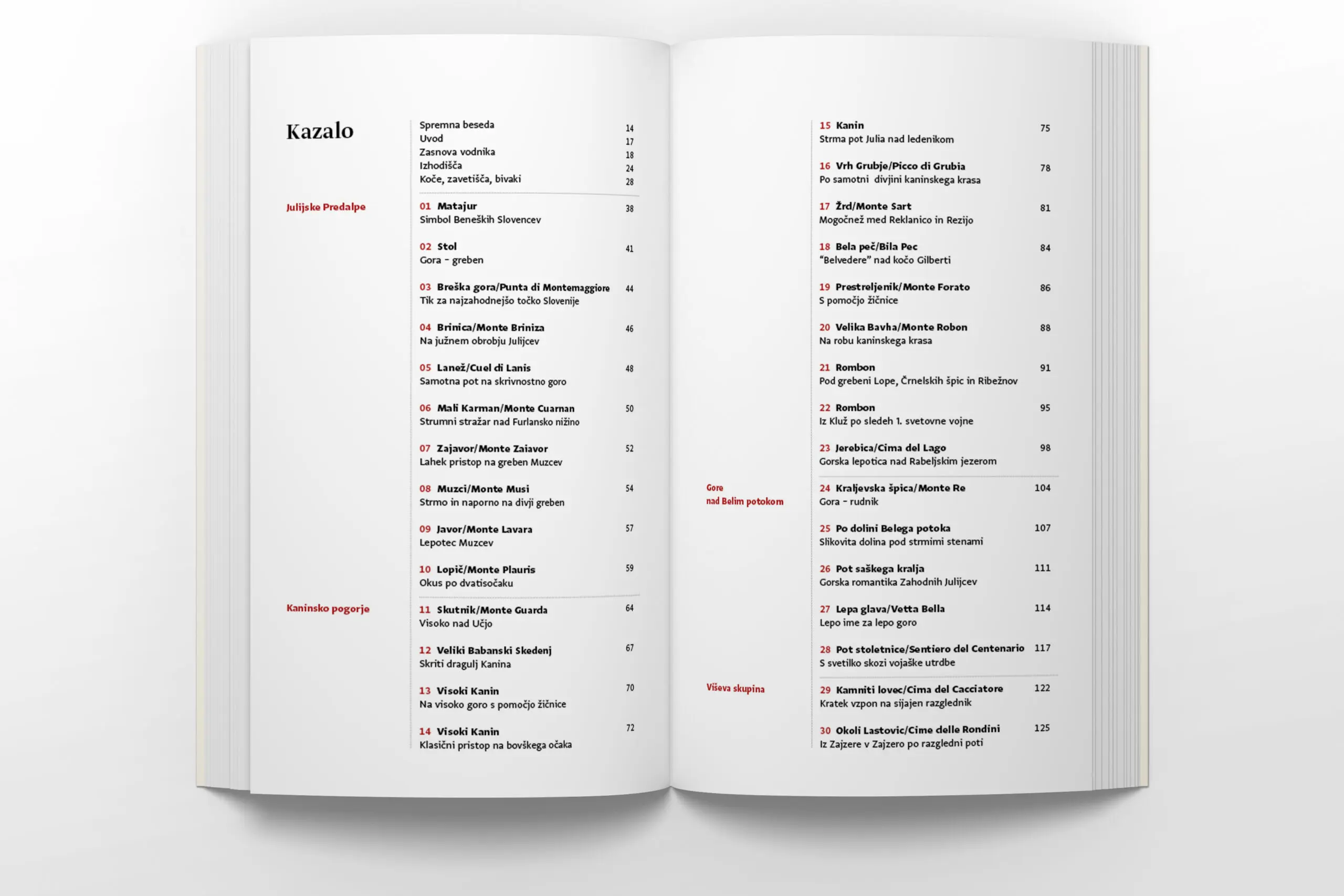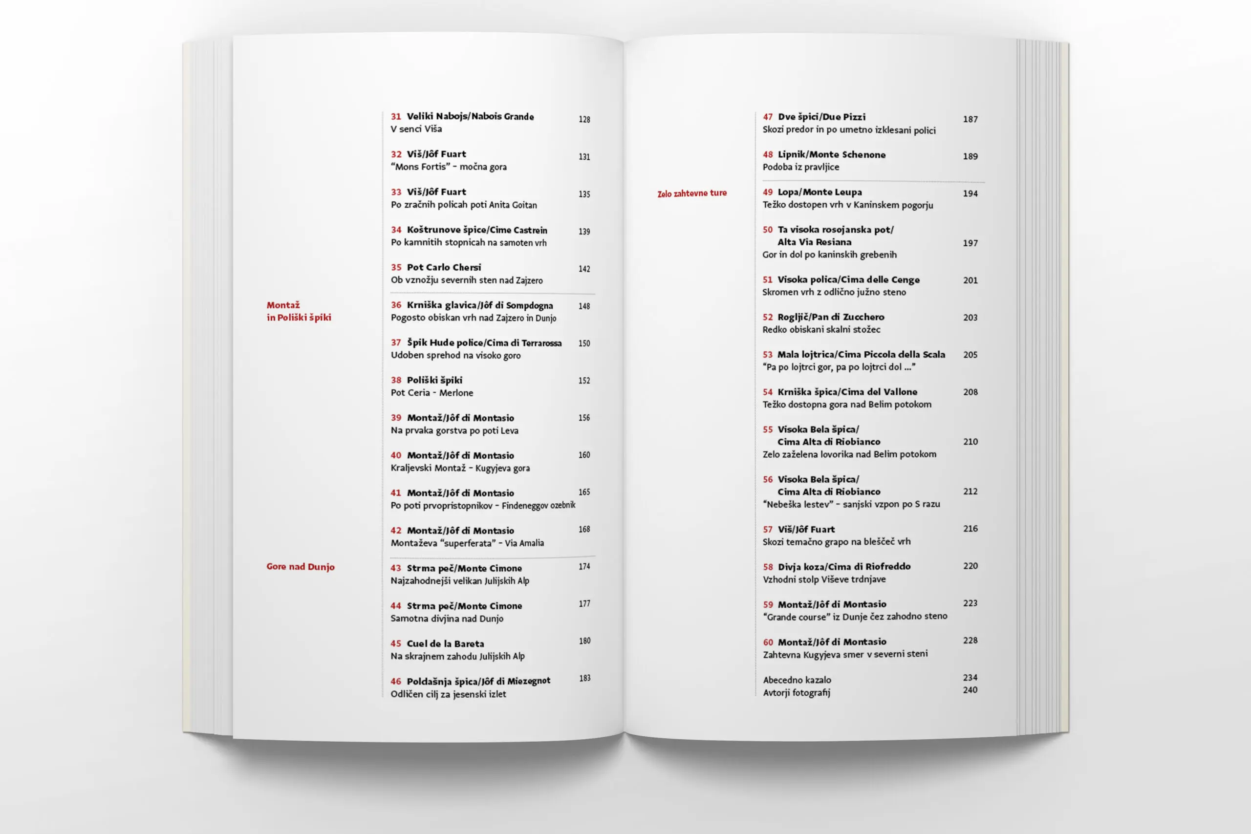 Že tretja, razširjena in dopolnjena izdaja prvega slovenskega izbirnega vodnika Zahodne Julijske Alpe. Avtor vodnika Andrej Mašera sodi med najboljše poznavalce teh gora, njegov vodnik iz leta 1998 pa je doživel več ponatisov in izdajo v italijanskem jeziku.