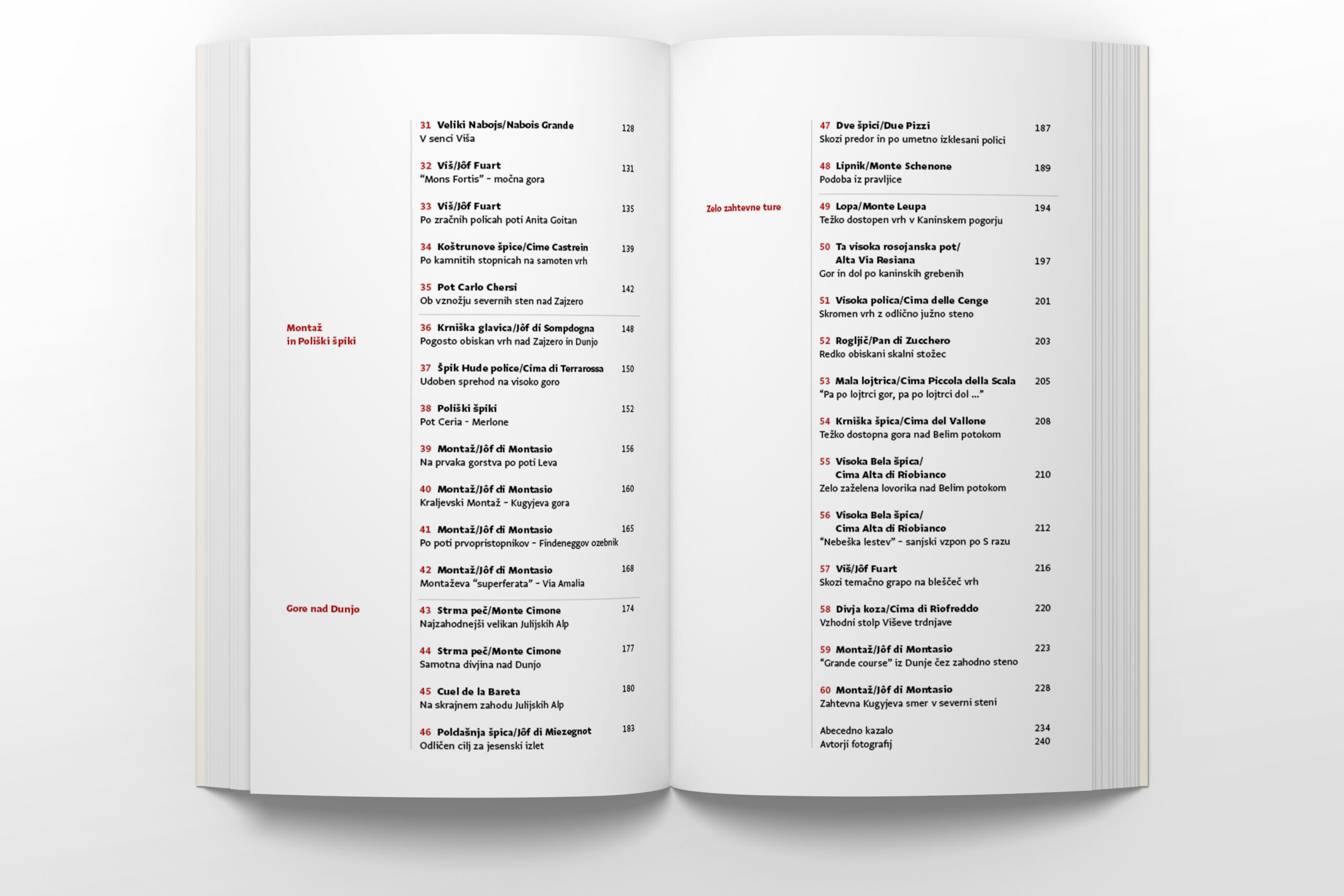 Že tretja, razširjena in dopolnjena izdaja prvega slovenskega izbirnega vodnika po Zahodnih Julijskih Alpah. Avtor vodnika Andrej Mašera sodi med najboljše poznavalce teh gora, njegov vodnik iz leta 1998 pa je doživel več ponatisov in izdajo v italijanskem jeziku.